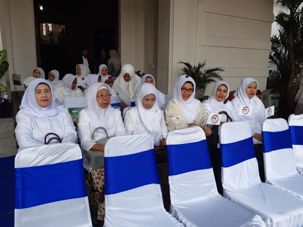 Kepala MAN 2 Kota Malang Dr. Hj Binti Maqsudah, M.Pd (nomor 3 dari kiri) mengikuti upacara peringatan hari santri nasional di Balai Kota Malang.